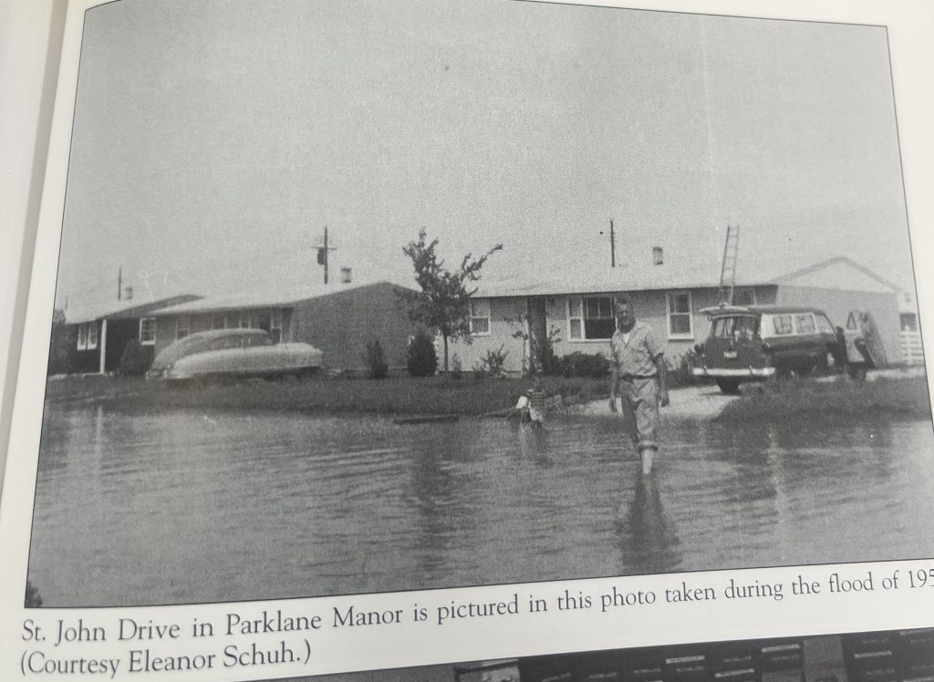 1957: Cahokia has heavy rain and floods again in streets and by homes.